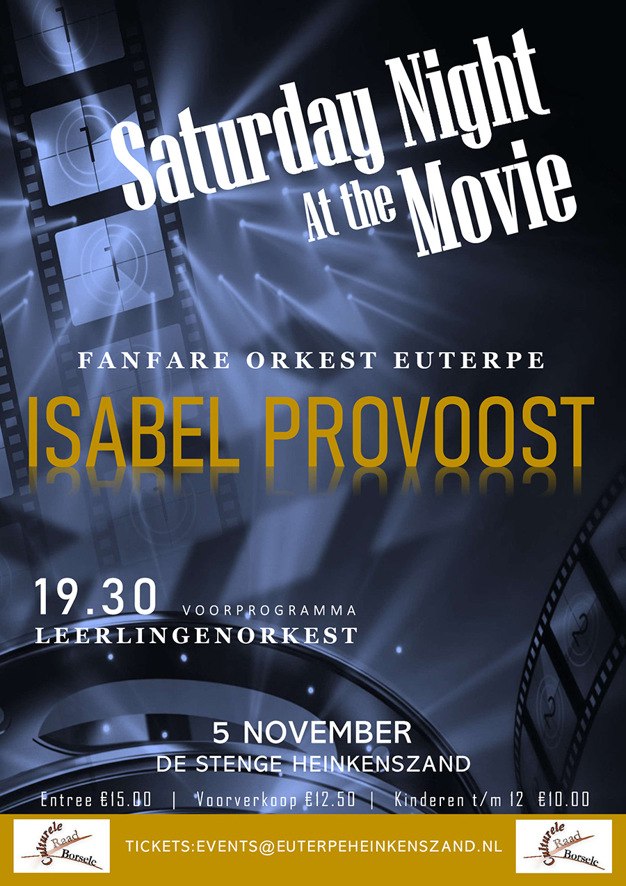 Zaterdagavond 5 november organiseert muziekvereniging Euterpe een filmconcert. Muziek uit allerlei genres films zullen de revue passeren en het geheel wordt ondersteund met beelden en fragmenten uit de betreffende films. Als speciale gast treedt op de Zeeuwse zangeres Isabel Provoost.…