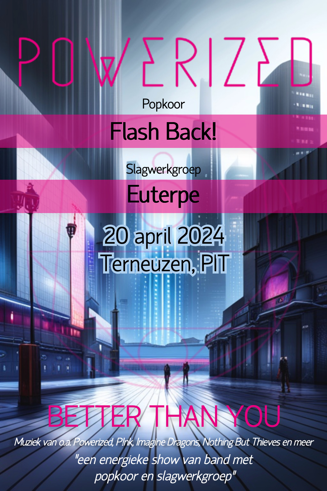 Op zaterdag 20 april treedt onze slagwerkgroep op in Terneuzen met popband Powerized! Houd de media in de gaten voor de verkoop van kaarten.