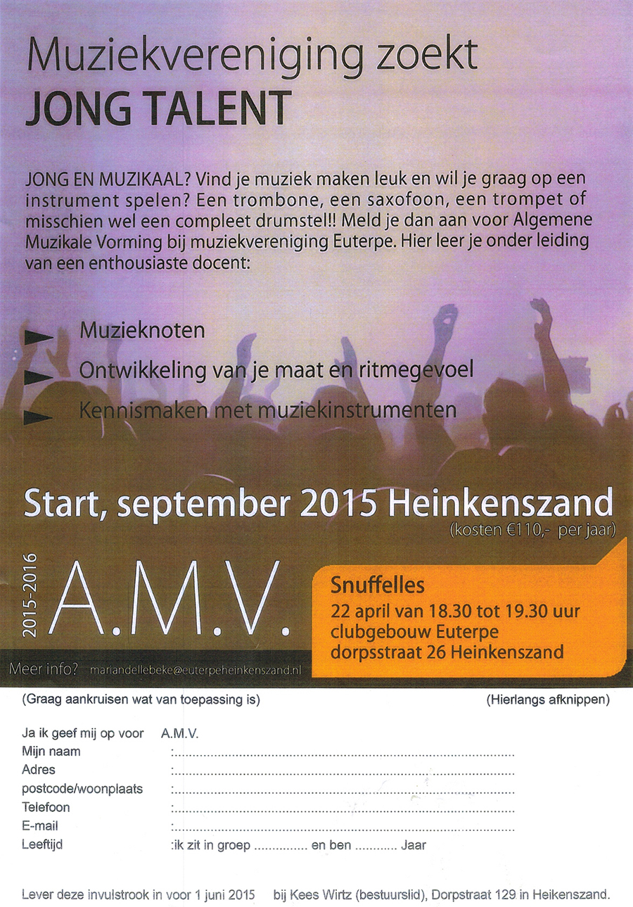 Euterpe zoekt JONG TALENT!! Woensdag 22 april is iedereen die informatie wil hebben over het leren bespelen van een instrument bij Euterpe van harte welkom in het clubgebouw, Dorpssstraat 26. Om 18.30 uur speelt het leerlingenorkest en de…